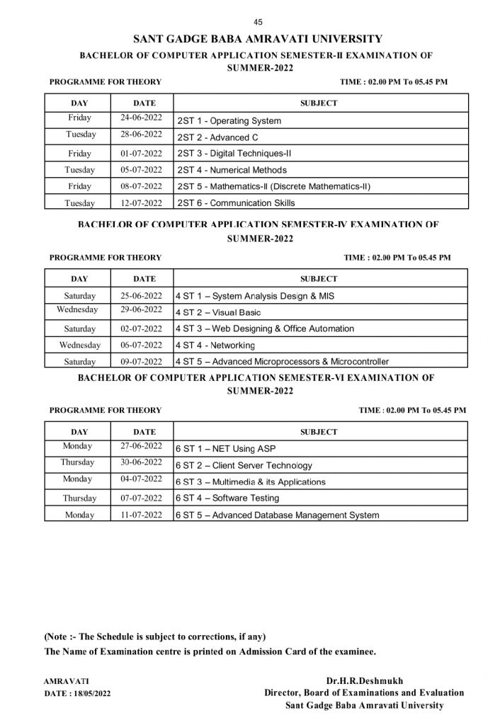 BCA – University Examination Time-Table S-2022